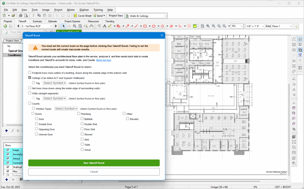 In short: Set Up for Success: Pick the right plan type and set the correct page scale so you can get accurate results from the start. Customize Your Results: Select the results you want Takeoff Boost to return based on what matches your plan. Review the Results: Learn how to interpret Conditions, Takeoff, and Layers […]