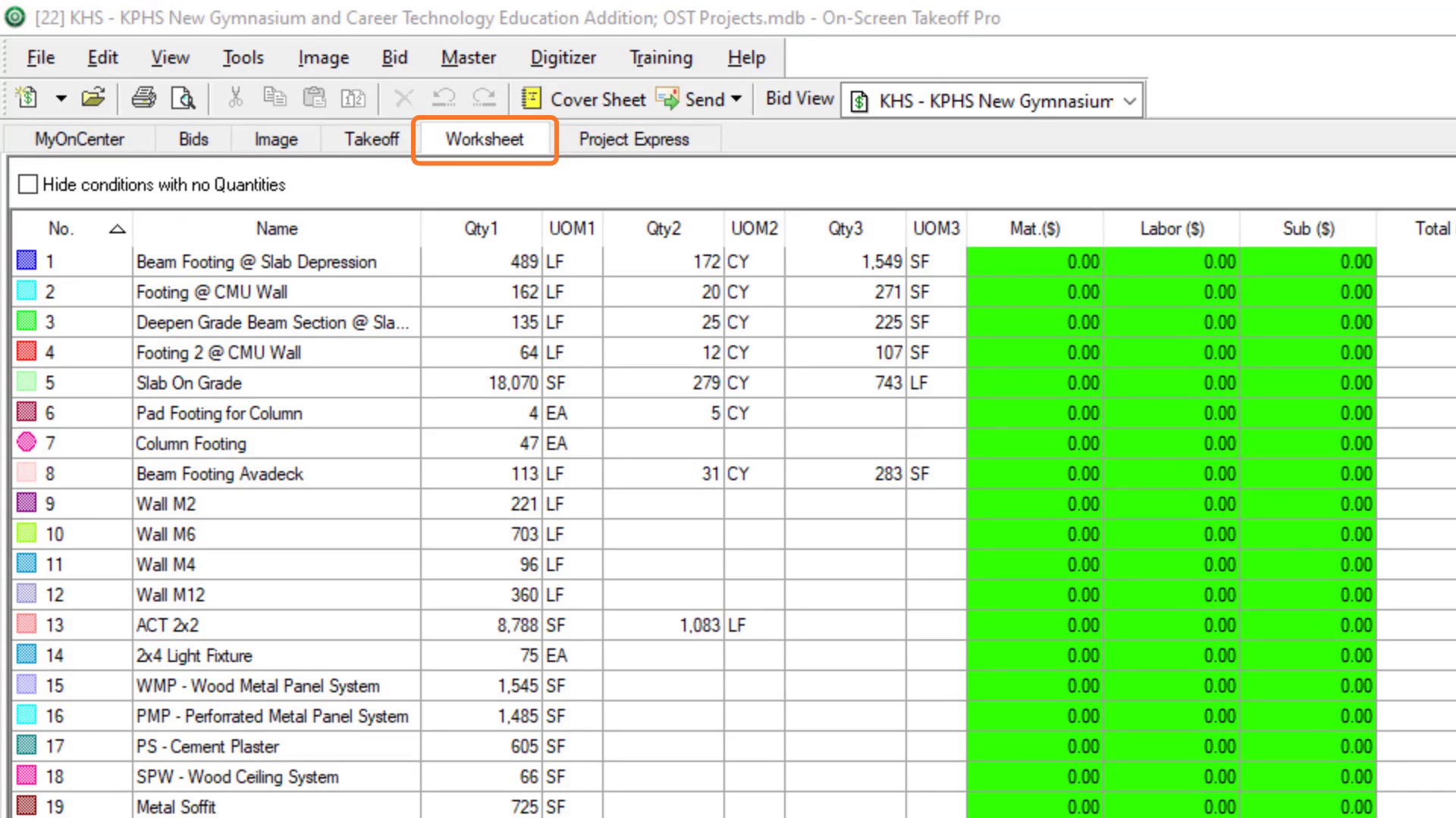 On-Screen Takeoff Program Tabs – Worksheet Tab
